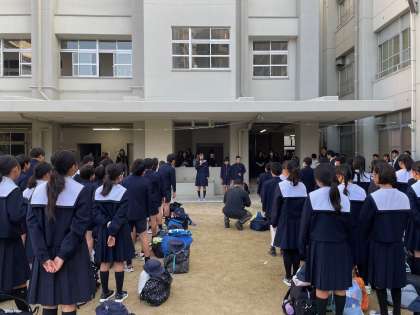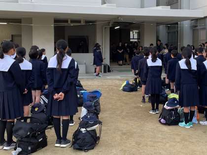いよいよ修学旅行の日がやってきました。朝から素晴らしい青空が広がる中、出発式を行いました。児童代表の気持ちのよいあいさつとともに、楽しい旅行がスタートしました。保護者のみなさま、お見送りありがとうございます。たくさんのお土産話を楽しみにしていてください。