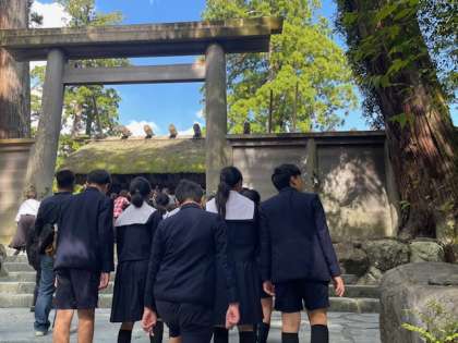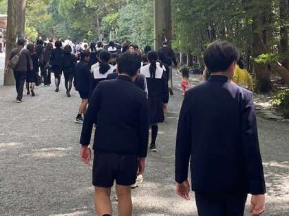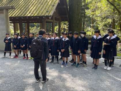 このあと、伊勢神宮の中心的な建物である正宮を見学します。先生と見学の心得を確認しました。