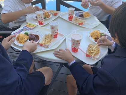 パーク内でのグループ行動が始まりました。まずは、腹ごしらえということで、ミールクーポンを使ってお昼ごはんを食べるグループが多かったです。