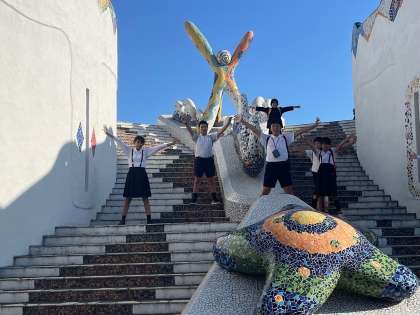 パークの魅力は、アトラクションだけではありません。建築家ガウディの作品「グエル公園」のイメージを参考に作られた広場など、建築物も見逃せません。