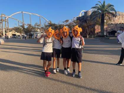 お土産で買ったかぶりものを付けて、はい、ポーズ!