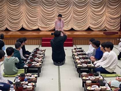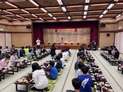 朝ごはんの時間となりました。朝のメニューも豊富です。それでは、「感謝して、いただきます!」
