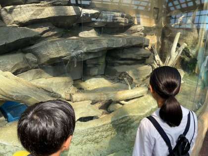 一般的な魚類や哺乳類以外にも、いろいろな生き物が飼育されています。上から順に、ペリカン、スナドリネコ、デンキウナギです。