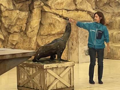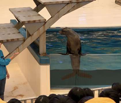 館内では、海の生き物たちの楽しいショーも繰り広げられています。まずは、アシカショーです。今回のショーは、アシカの「リコ」が出演しました。