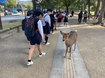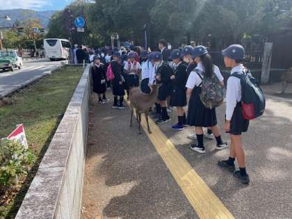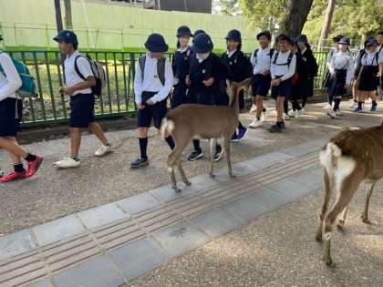 近鉄奈良駅に降り立ち、奈良公園に近づいてくると、さっそくたくさんのシカたちがお出迎え。さすが奈良公園のシンボルです。