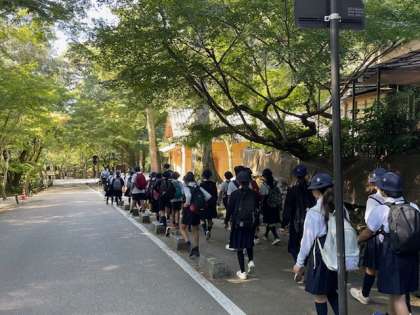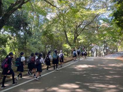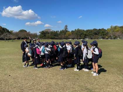 午前の見学を終え、昼食場所に向かいます。豊かな緑の間を抜けて行くと、そこには美しい芝生が広がっていました。