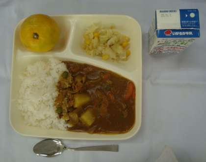 「ポークカレーライス(米粉) サワーソテー みかん 牛乳」