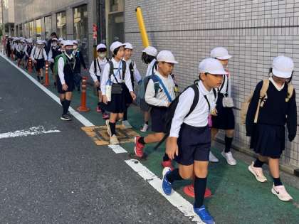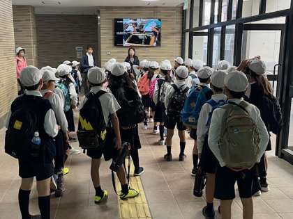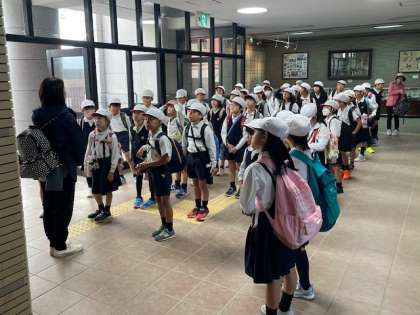 今日は、3年生が秋の遠足に行きました。行き先は、万博公園です。朝の出発の様子です。今日も、とてもいいお天気になりそうです。