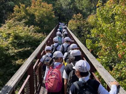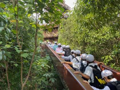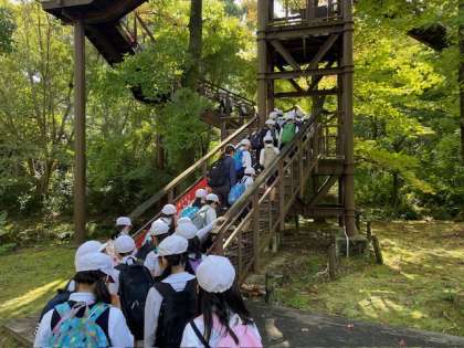 続いて、森の空中観察路「ソラード」に行きました。大阪万博30周年を記念して2000年に整備された立体的な遊歩道です。