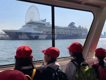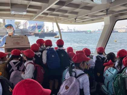 天保山渡船場から渡船に乗ります。明治時代に開設された市民の大切な移動手段で、港区と此花区の岸壁間約400mを結んでいます。