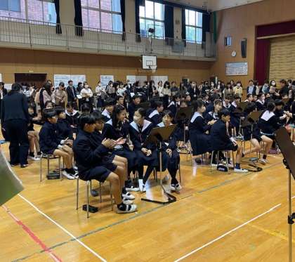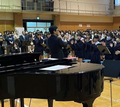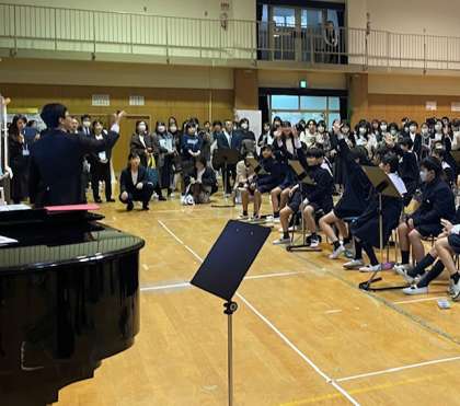 「リズムの特徴を生かして表現しよう」という題材で、グループごとにハンド・クラップによる2種類のリズムをつくって組み合わせ、8小節分の音楽をつくるという学習です。