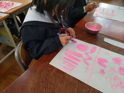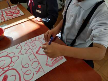 国語科書写の学習では、筆を使った授業を行いました。3年生から始まる毛筆の学習の導入です。今日初めて筆を握る児童も多く、悪戦苦闘していましたが、だんだん思う太さの線を書けるようになってきました。子どもたちは目を輝かせ、楽しそうに取り組んでいました。