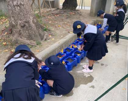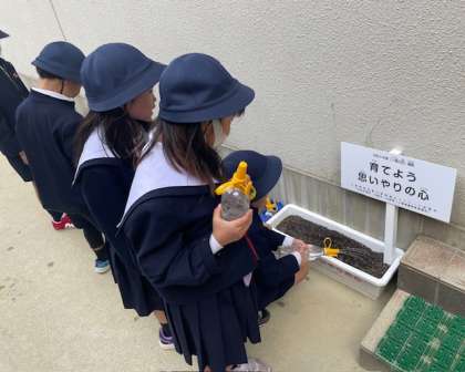 1年生の子どもたちが、令和5年度「人権の花」運動に取り組んでいます。来年度入学してくる新しい1年生のために、チューリップを育てる取組です。暖かくなって、きれいな花を咲かせてくれる日が、今からとても楽しみです。