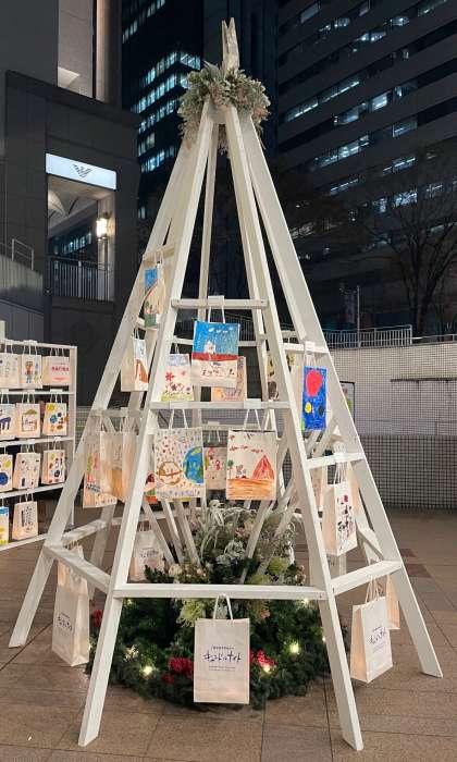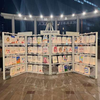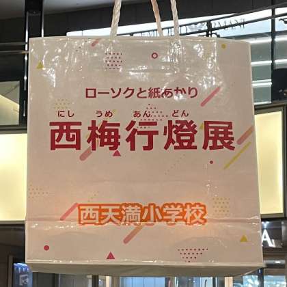 今宵、西梅田一帯で、100万人のキャンドルナイトが開催され、西梅行燈展 〜ペーパーバッグ行燈展〜 に、西天満小学校1年生の作品が展示されました。