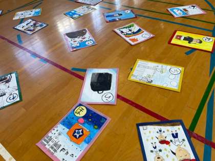 ジャンボカルタには西天満小学校の良いところや自慢がたくさん描かれています。