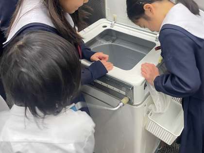 そしてここは、洗濯のコーナー。洗濯板で洗ったり、洗濯機に付属のローラーで脱水したりしました。