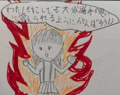◇ 今日は、大谷選手からもらったグローブを、実さいにさわりました。みんなの所に3つずつわたすほど、野球がすきなことなどがわかりました。わたしは苦手だけれど、このきっかけで一人でも野球選手がふえてくれるといいなと思いました。わたしも球技をすこしずつがんばろうと思います。