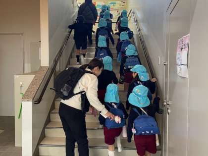 今日は、菅南幼稚園の5歳児そら組さんが、西天満小学校の見学に来てくれました。