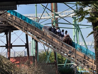 「絶叫の滝」というアトラクションでは、叫ぶ声の音量で点数化されます。