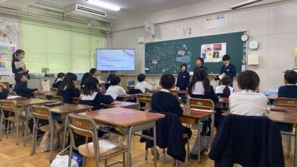 外国のことをグループで紹介しました。聞いている人のことを意識して、伝わるように話していました。また、友達の発表を聞いて、疑問に思ったことを質問し、学びを深めていました。