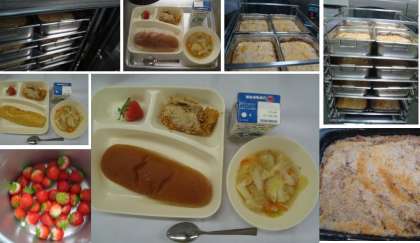 「とうふのミートグラタン じゃがいもと野菜のスープ いちご 黒糖パン 牛乳」