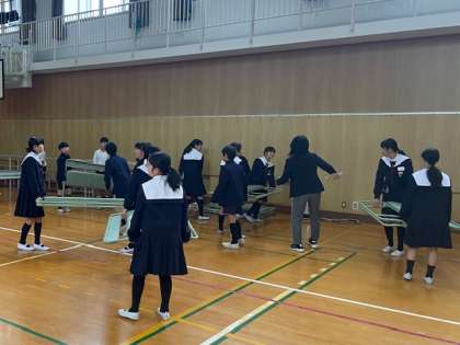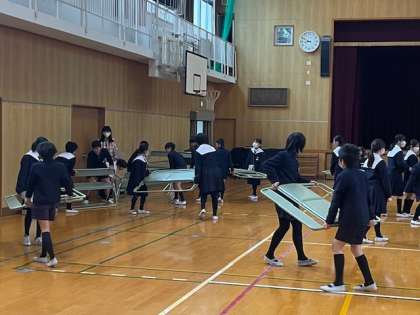 今日は朝一番から、5年生が卒業式に向けて、式場設営を行いました。
