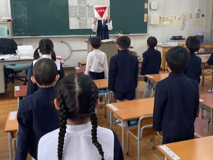 信号のある交差点の渡り方と信号のない交差点の渡り方の違いなど、具体的な場面を取りあげて、とてもわかりやすく教えてくださいました。さっそく今日の帰り道から気をつけようねと担任の先生からもお話がありました。