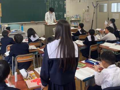 4年生の国語の時間です。物語文「こわれた千の楽器」を読んで、登場人物の会話文に着目しながら、音読の仕方の工夫について考えています。よい音読はよい読み取りから生まれますね。