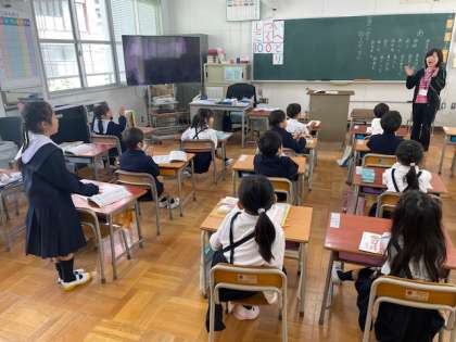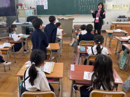 1年生の国語の時間です。みんなで「あ」のつく言葉を出し合いました。あさがお、あおぞら、あるばむなどたくさん出てきました。そんな中、ある子が「ありがとう」と発言しました。とても素敵な感性ですね。