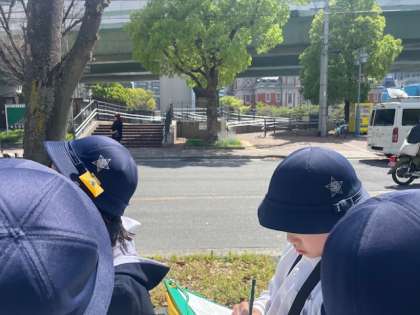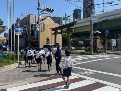 堂島川の向こうに、レンガ造りの中央公会堂が見えました。鉾流橋を過ぎると、乾物商の鳥居と石燈籠が見えてきました。歴史と伝統が感じられる風景です。