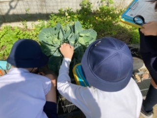 3年生の理科では、春の生き物観察に取り組んでいます。虫眼鏡を持って子どもたちは探偵気分。運動場や中庭で、意欲的に観察する姿が見られました。