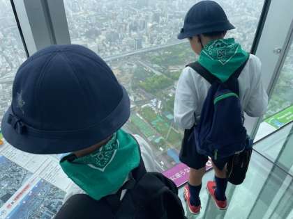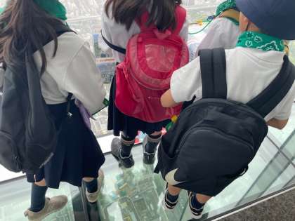 ガラス張りの床の上に立ってみました。下を見ていると足がすくんでしまいます。ハルカスの高さをあらためて実感しました。