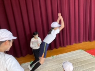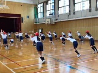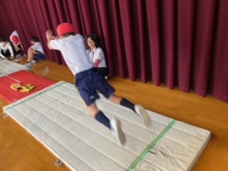 6年生の体育の時間です。新体力テストの「立ち幅跳び」に取り組みました。