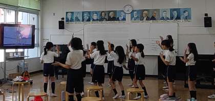 ダンスクラブでは、練習する曲を決めて、動画を参考にしながら体の動かし方を確かめて踊りました。