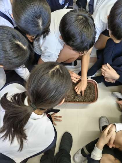 道徳で「命のアサガオ」というお話を通して生命の大切さについて考えました。1年生のときに植えた時とはまた違う気持ちでアサガオを植えました。これから6年生みんなで大事に育てます。