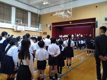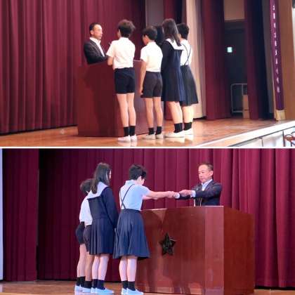 今朝の児童集会では、児童会の認証式を行いました。議長・副議長・書記の4人が校長先生から認証状をいただき、今年度の抱負をスピーチしました。また、代表児童からは、来週から始まるあいさつ運動に向けてのお話もありました。今年度も「日本一のあいさつ」を目標にがんばりましょう!