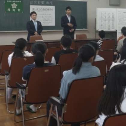 令和5年度に本校を卒業した子どもたちを迎える「同窓会歓迎会」が開かれました。同窓会会長をはじめ、PTA卒業対策委員会のみなさんや6年時の担任の先生など、たくさんの人に見守られて、子どもたちは久しぶりに会う友だちと楽しい時間を過ごしました。