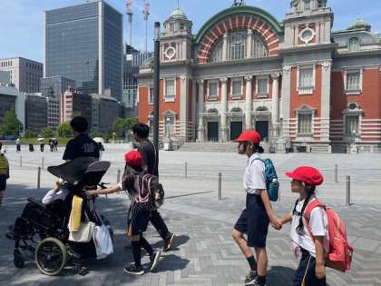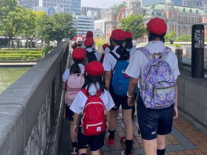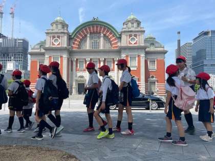 堂島川を越えて、中之島に入ります。レンガ造りの大阪市中央公会堂が陽光に照らされて輝いています。