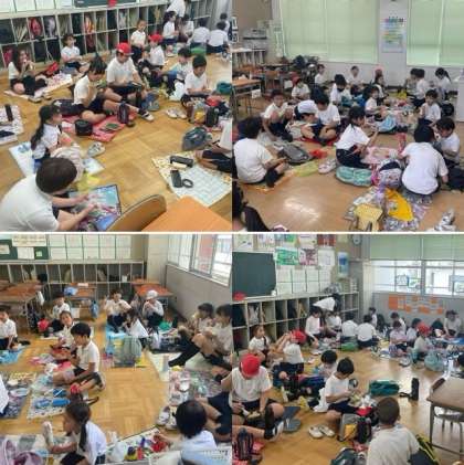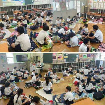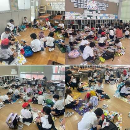 学校に到着したあとは、班ごとの教室に分かれて、待ちに待ったお弁当タイムです。これからも、たてわり班活動を通して、さらに仲良くなりましょうね。