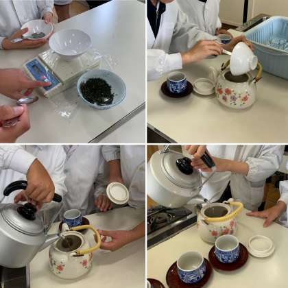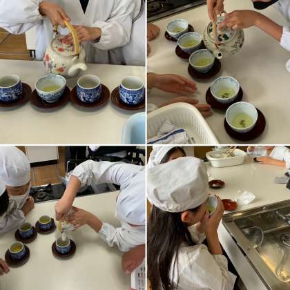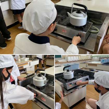 家庭科で「お茶をいれてみよう」の学習をしました。5年生にとっては初めての実習でしたが、先生の話をしっかりと聞いて、上手にお茶を入れることができました!ガスコンロの使い方もバッチリです!