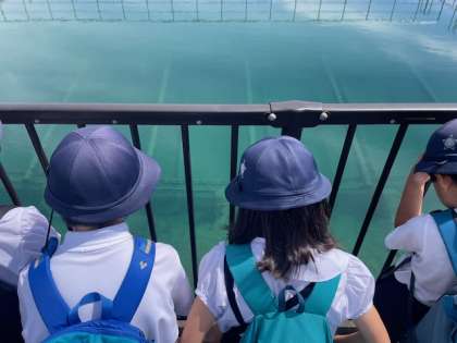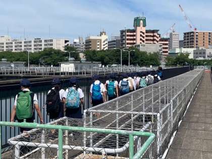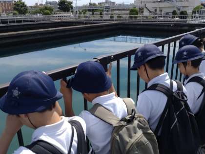 46万平方メートルもの広大な敷地をもつ施設を巡ります。淀川から取水塔で取り入れられた水は、混和池、フロック形成池、沈殿池などを通り、徐々に浄化されていきます。