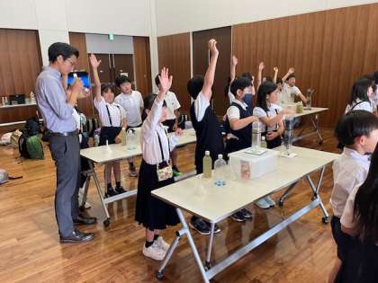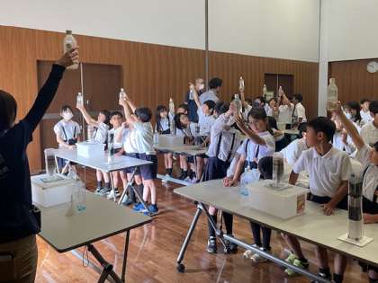場内の見学が終わったあとは、研修室に入り、水の濾過実験を行いました。私たちの生活に欠かすことのできない大切な水について、さまざまな角度から学習を深めることができた1日となりました。浄水場職員のみなさま、ありがとうございました。