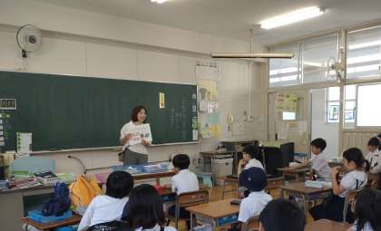 これまでにベルマークによって購入できたものや、学校にベルマークを持ってきた際の棚への入れ方などについて、分かりやすくお話しくださいました。