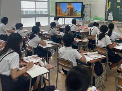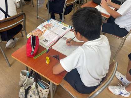 6年生の社会の時間です。奈良時代の大仏づくりの様子について調べています。巨大な大仏を作る際の骨組みはどのようにしていたのか、表面を金属で覆う際にはどのような方法をとっていたのか、また、事故などのトラブルはなかったのか等について、さまざまな資料を交えながら考えました。
