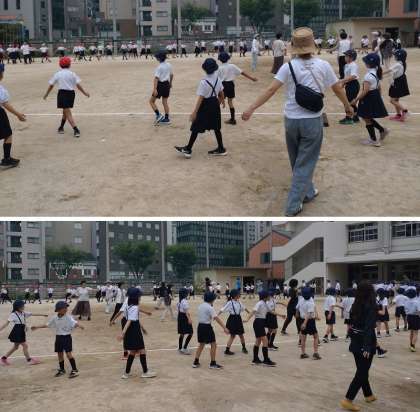 地域の女性会の方々と、PTA地域委員のみなさんのご協力を得て、「西天満音頭」の踊りを教えていただきました。歌詞の「たくましく」での手の動かし方や、最後の決めポーズなど、踊りの中でポイントになる部分のお手本を教えていただき、練習をする前よりも一つ一つの振りが上手にできるようになりました。児童代表のあいさつの後、頑張ったみんなで拍手!8月の菅南・西天満祭でも、ぜひ楽しんで踊りたいですね。