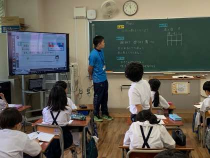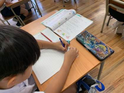 2年生が「100をこえる数」の学習で、347、289、350の中でどの数が大きいかを考えました。学習を進める中で、上の位の数字から順に比べていけばよいことに気付いていました。