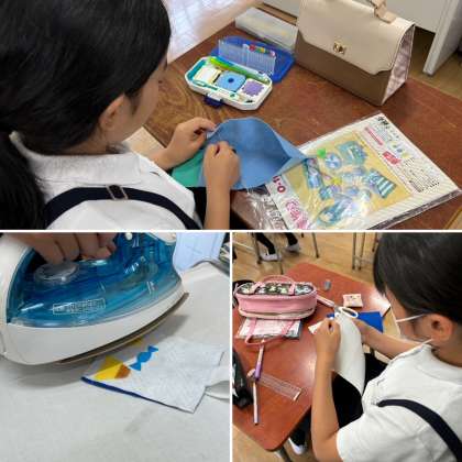 針と糸の使い方に慣れてきた5年生の子どもたちは、小物づくりに挑戦しています。ティッシュケースやペンケース、メガネケース等、自由に作るものを考えて工夫しながら取り組んでいます。どのような作品に仕上がるのか、とても楽しみです!