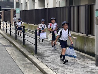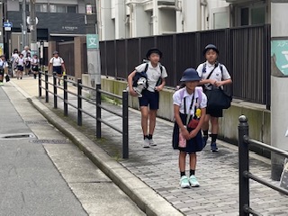 三連休明けの登校の様子です。久しぶりに青空が顔をのぞかせました。シャンシャン…というセミの鳴き声も聞こえ始めました。梅雨明けも間近なようです。
