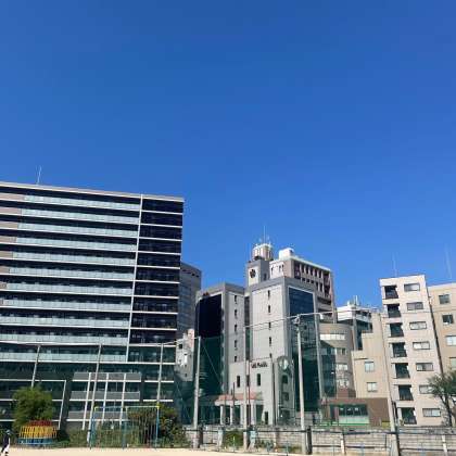 今朝の西天満小学校の空の様子です。きれいな青空が広がっています。昨日、気象庁から近畿地方の梅雨明けが発表されました。いよいよ夏本番です。楽しいお祭りや林間学習を控えています。適度な水分補給や涼しい場所での休憩など、熱中症対策に心がけて、元気に楽しく過ごしましょう。
