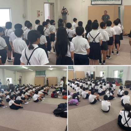 宿舎に入館したあと、集会室で開舎式を行いました。今日から3日間お世話になる白樺館の方に、よろしくお願いしますのあいさつをしました。